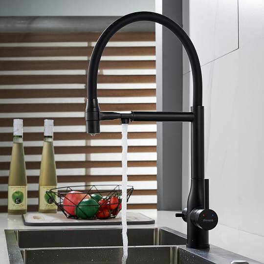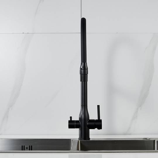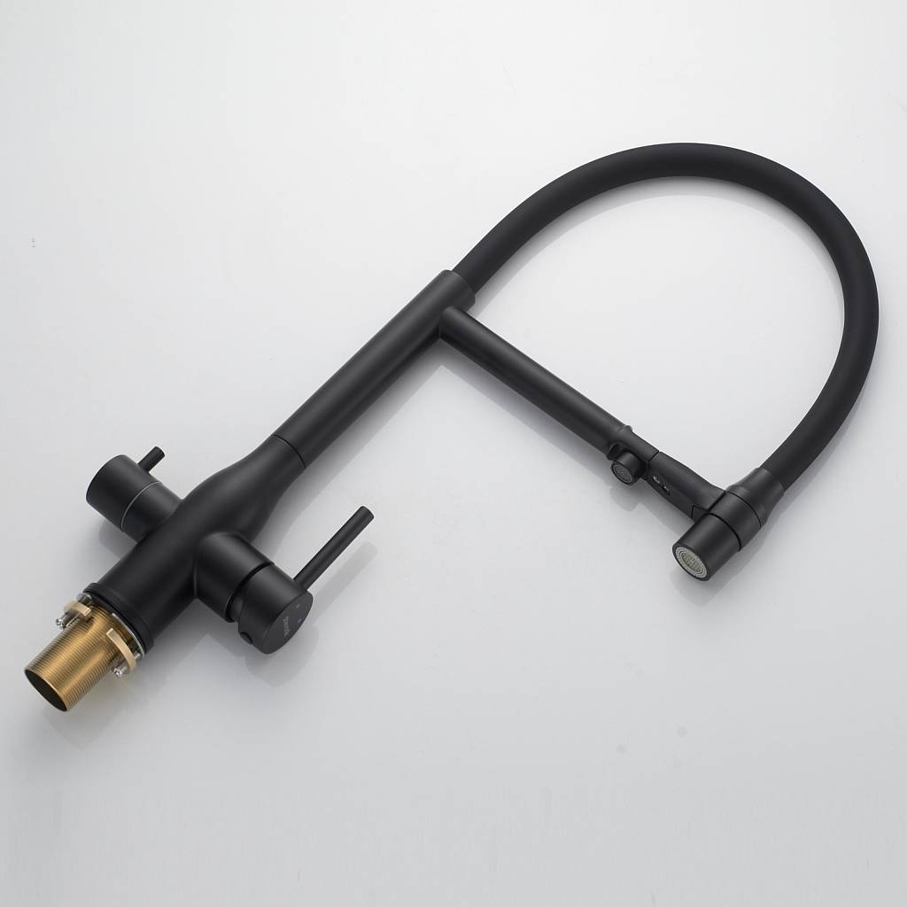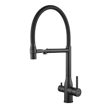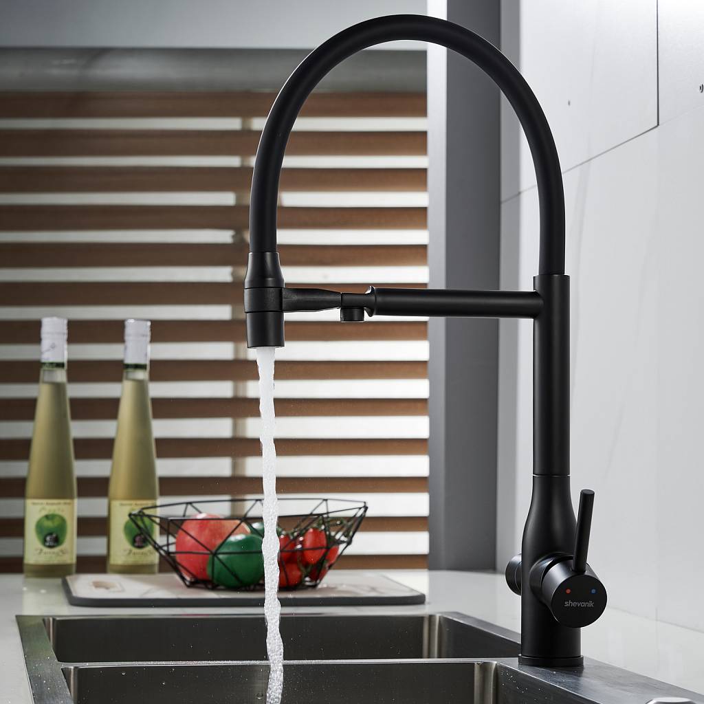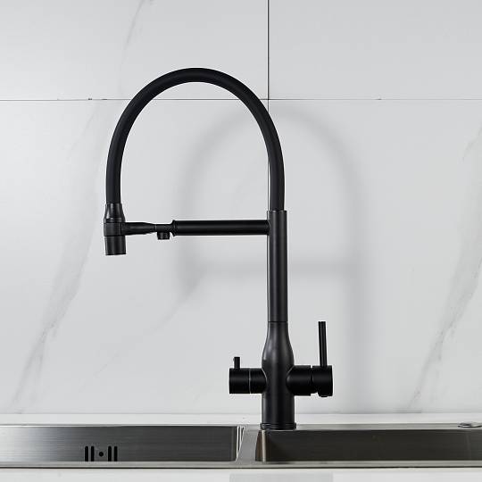 Смеситель для кухни с гибким изливом и подключением фильтра Shevanik S378H, черный купить по цене 9 782 руб.
