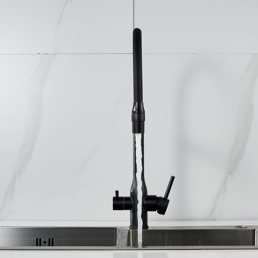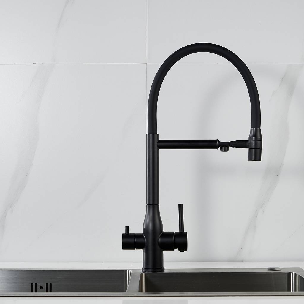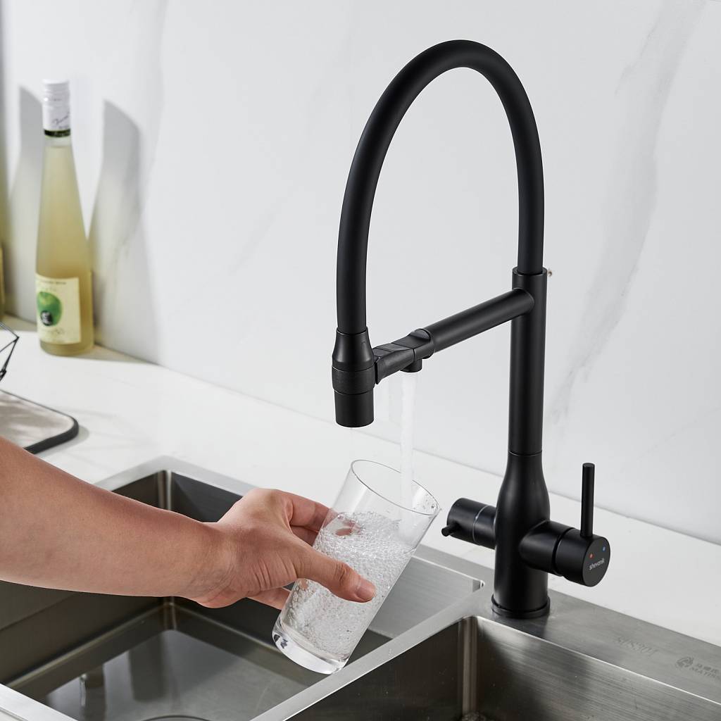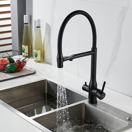 Смеситель для кухни с гибким изливом и подключением фильтра Shevanik S378H, черный купить по цене 9 782 руб.