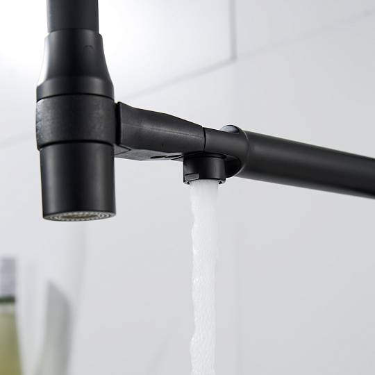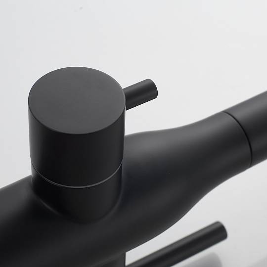 В основе работы смесителя — надёжный керамический картридж с эргономичным рычажным управлением, обеспечивающим плавное и точное регулирование напора и температуры воды. Но главное достоинство модели — возможность подключения фильтра для воды: фильтрованная вода подаётся через отдельный поворотный излив, оснащённый аэратором. Это позволяет получать кристально чистую воду для питья и приготовления пищи прямо из крана.