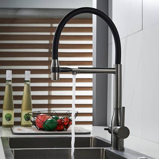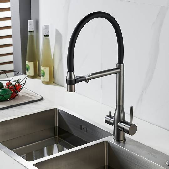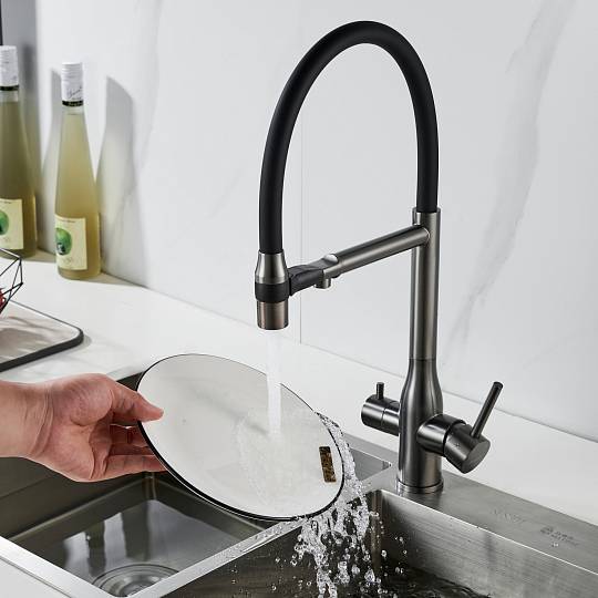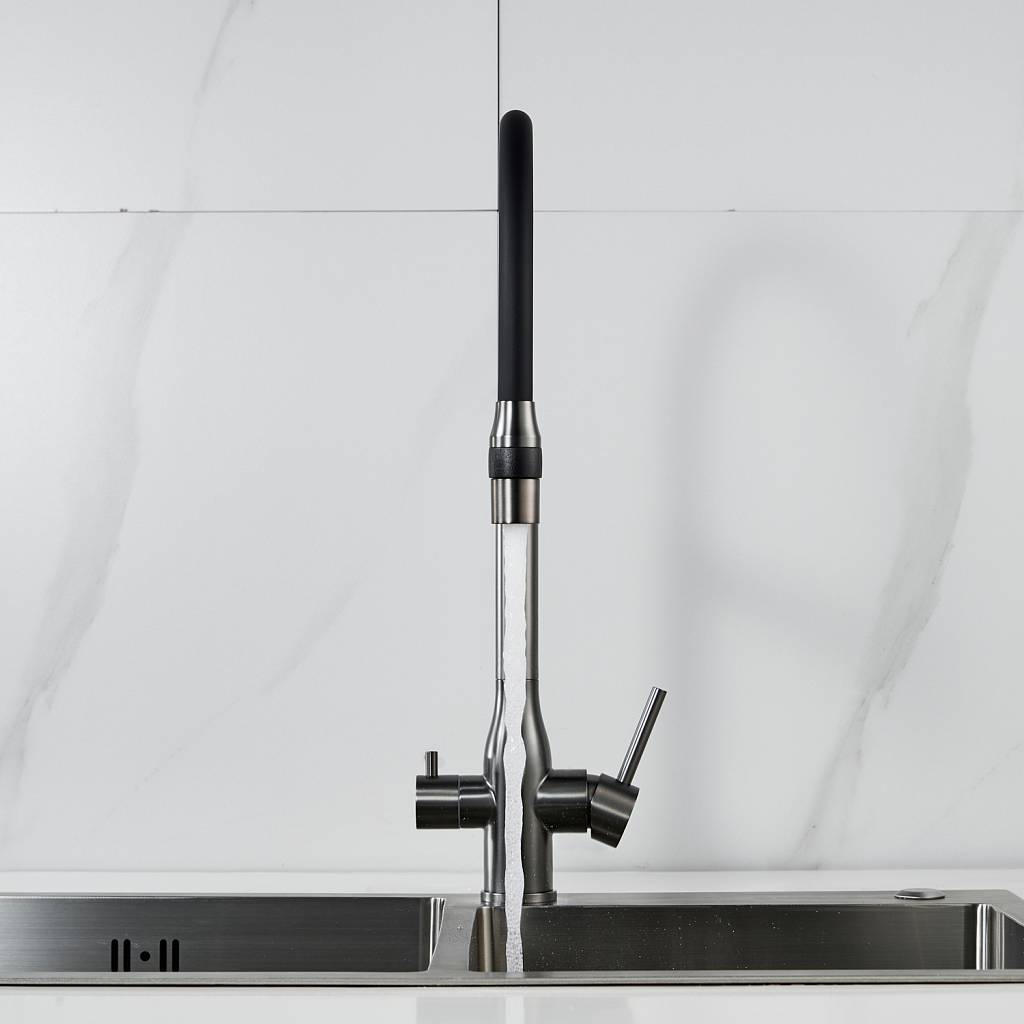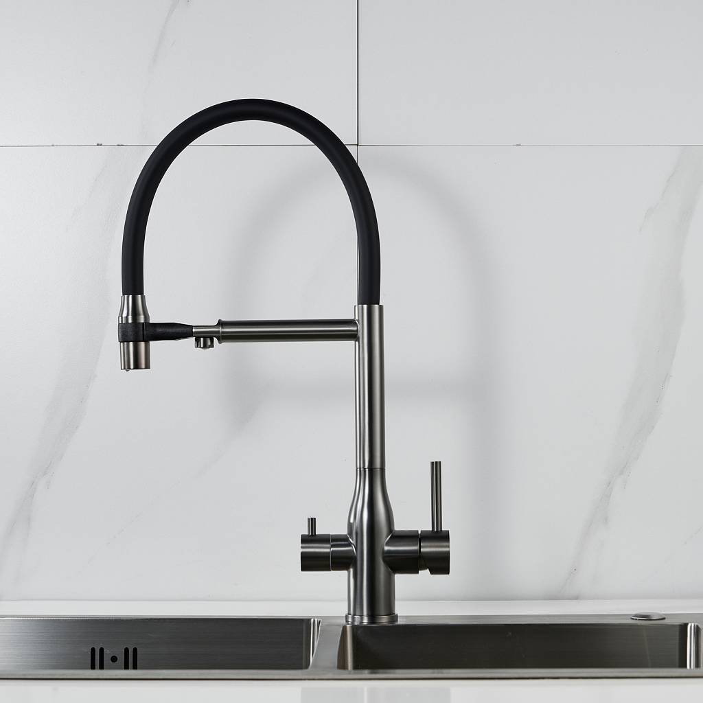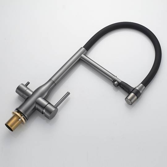 Смеситель для кухни с гибким изливом и подключением фильтра Shevanik S378T, оружейная сталь купить по цене 10 002 руб.
