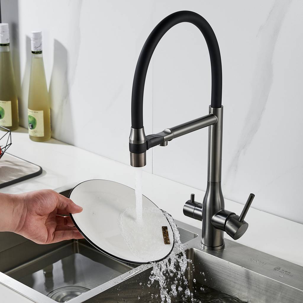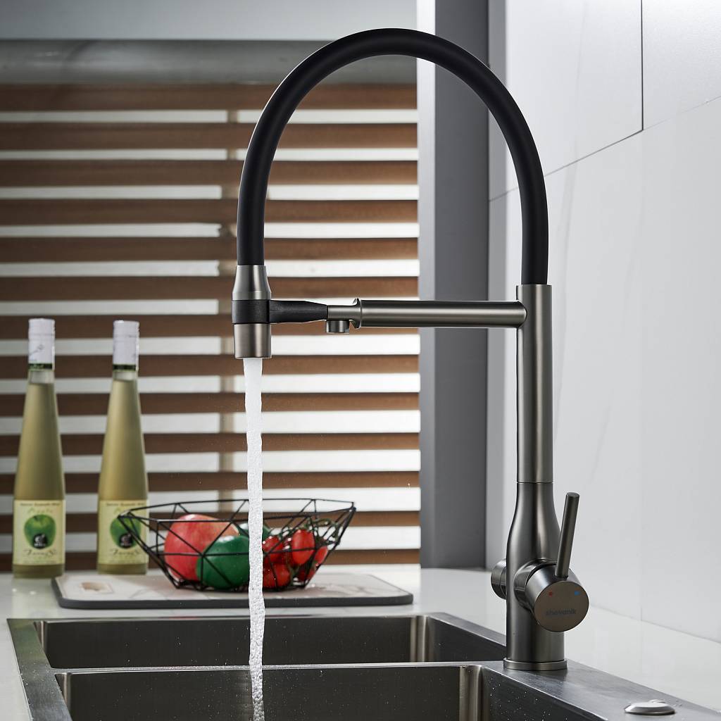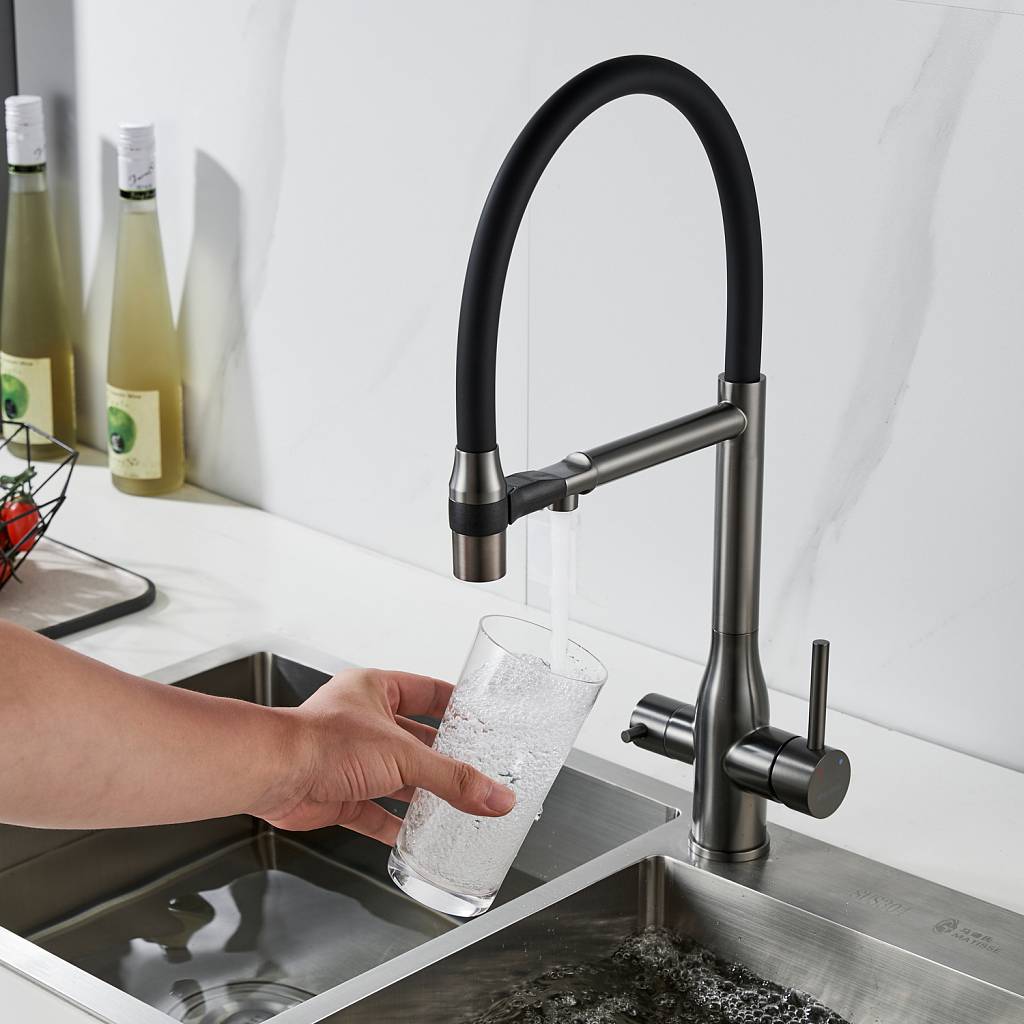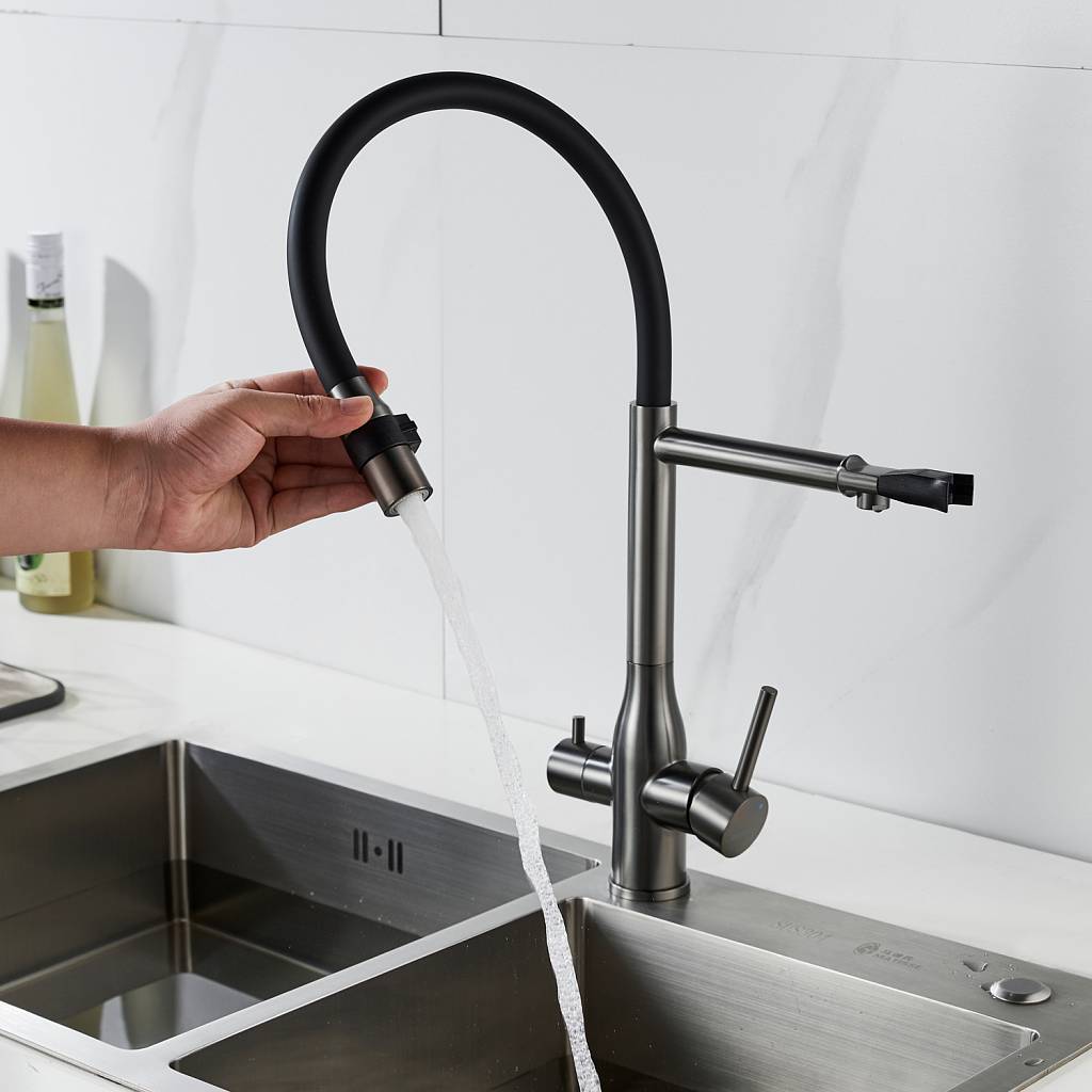Смеситель для кухни с гибким изливом и подключением фильтра Shevanik S378T, оружейная сталь купить по цене 10 002 руб.