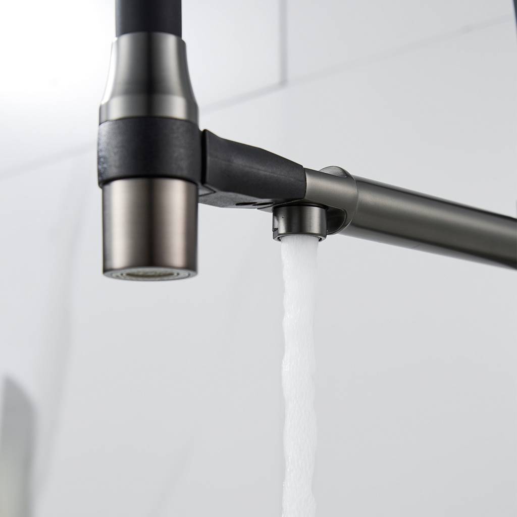 Смеситель для кухни с гибким изливом и подключением фильтра Shevanik S378T, оружейная сталь