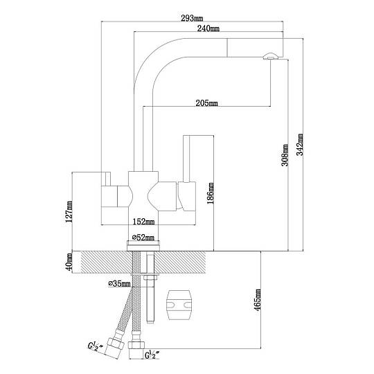 Материал - нержавеющая сталь. Поворотный выдвижной излив. Керамический картридж 35мм. Гибкая подводка. Выдвижной излив. С подключением под питьевую воду.