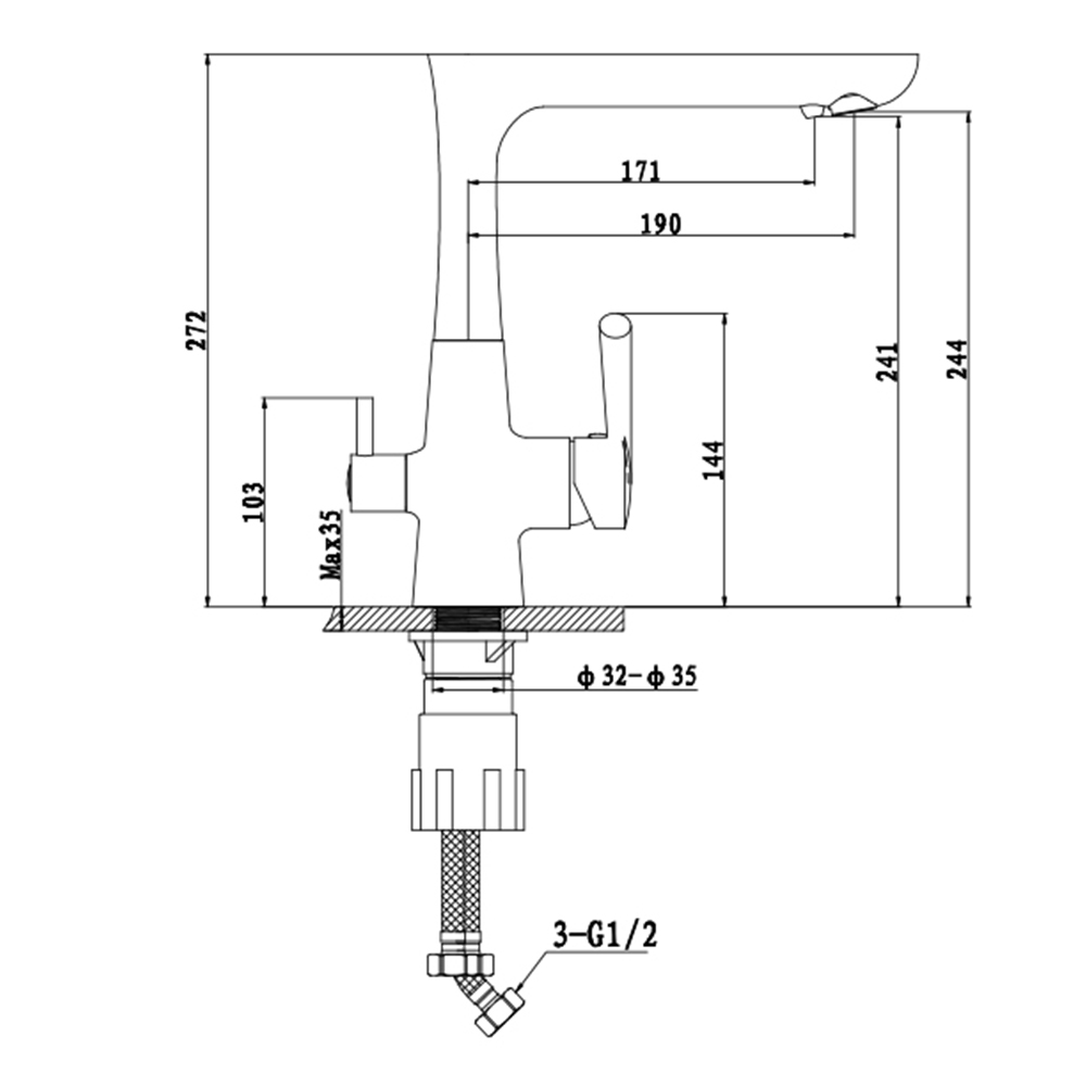 Смеситель для кухни с подключением фильтра GranFest 3223, крем. Материал: латунь. Управление: рычажное. Подключение фильтра для воды: да. Гибкая подводка. Отверстия для монтажа: 1.