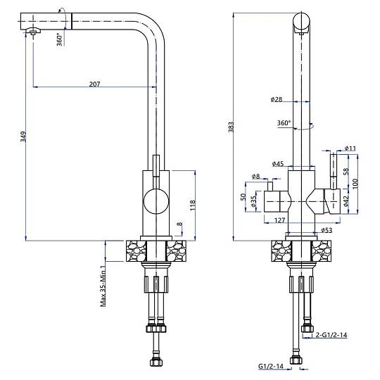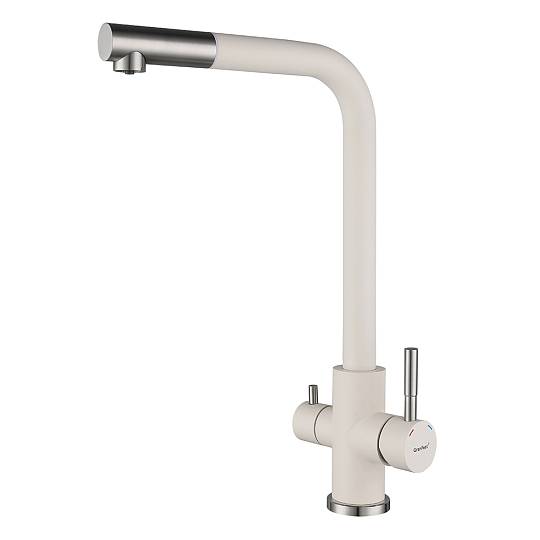 Смеситель для кухни с подключением фильтра GranFest Z-5421, белый. Материал: нержавеющая сталь. Управление: рычажное. Подключение фильтра для воды: да. Гибкая подводка. Отверстия для монтажа: 1.