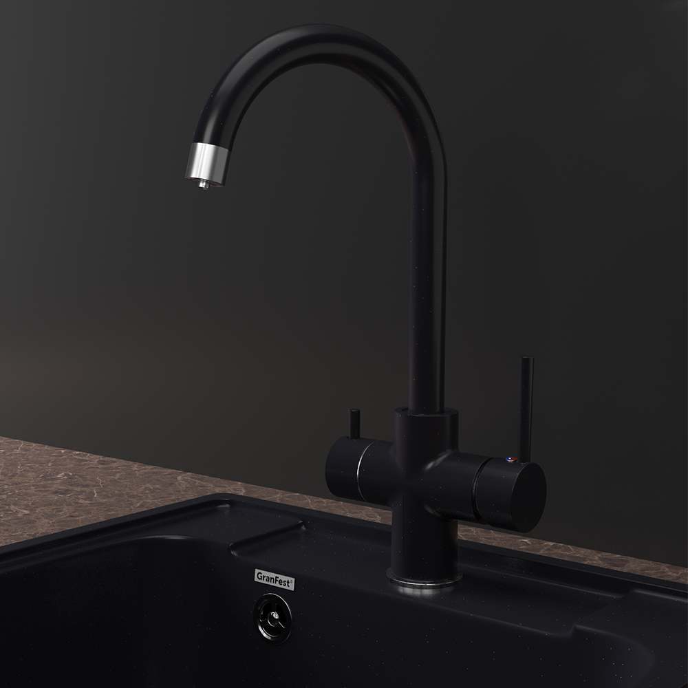 Смеситель для кухни с подключением фильтра GranFestGF-Z-5422, черный купить по цене 17 900 руб.