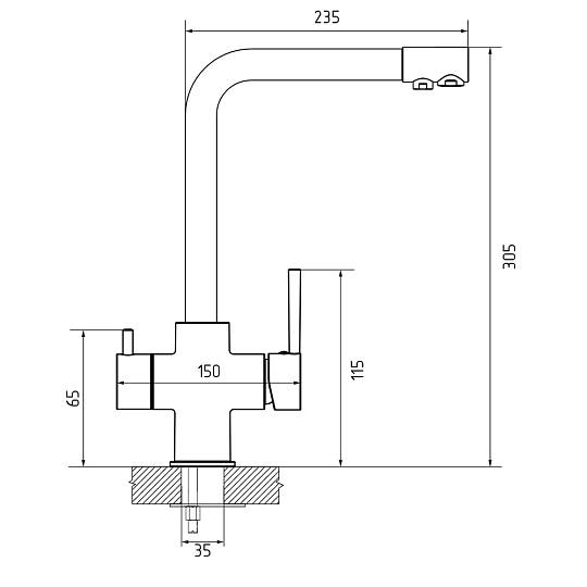 Смеситель для кухни с подключением фильтра GranFestGF-Z-5423, черный. Материал: нержавеющая сталь. Управление: рычажное. Подключение фильтра для воды: да. Гибкая подводка. Отверстия для монтажа: 1.