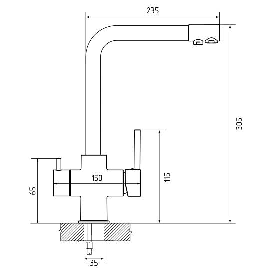 Смеситель для кухни с подключением фильтра GranFestGF-Z-5423, темно-серый. Материал: нержавеющая сталь. Управление: рычажное. Подключение фильтра для воды: да. Гибкая подводка. Отверстия для монтажа: 1.