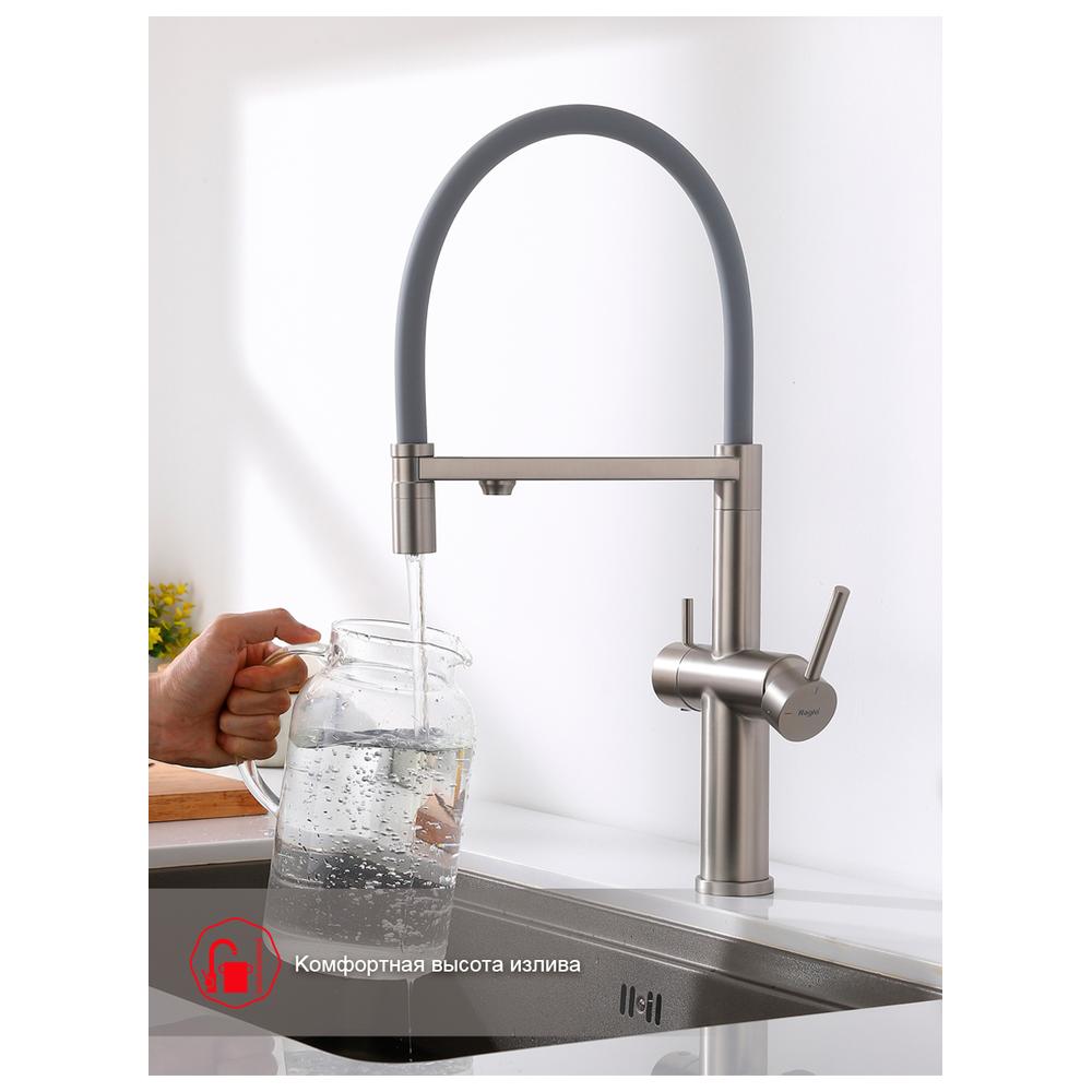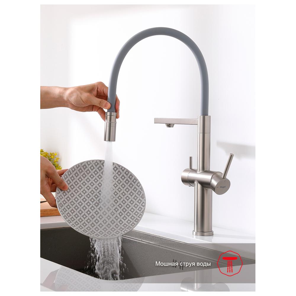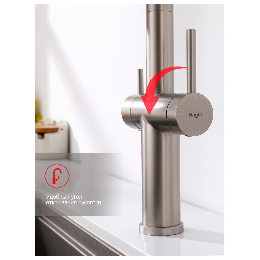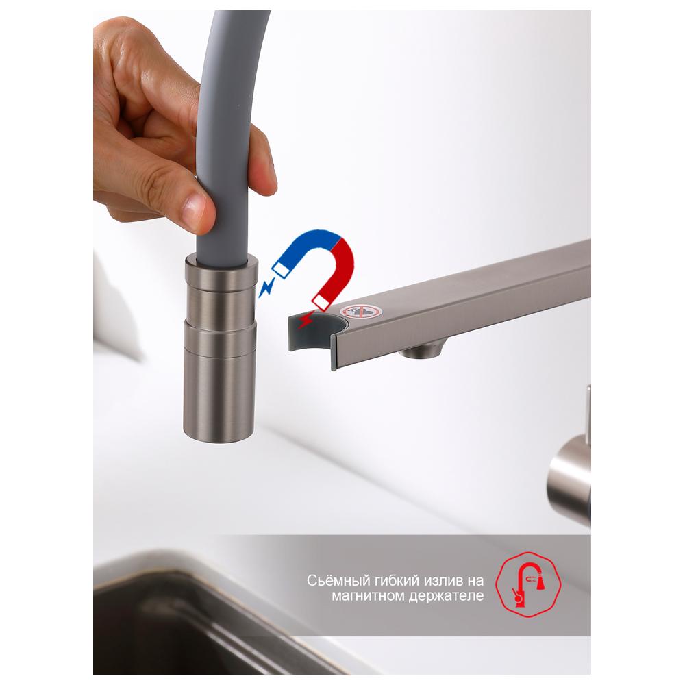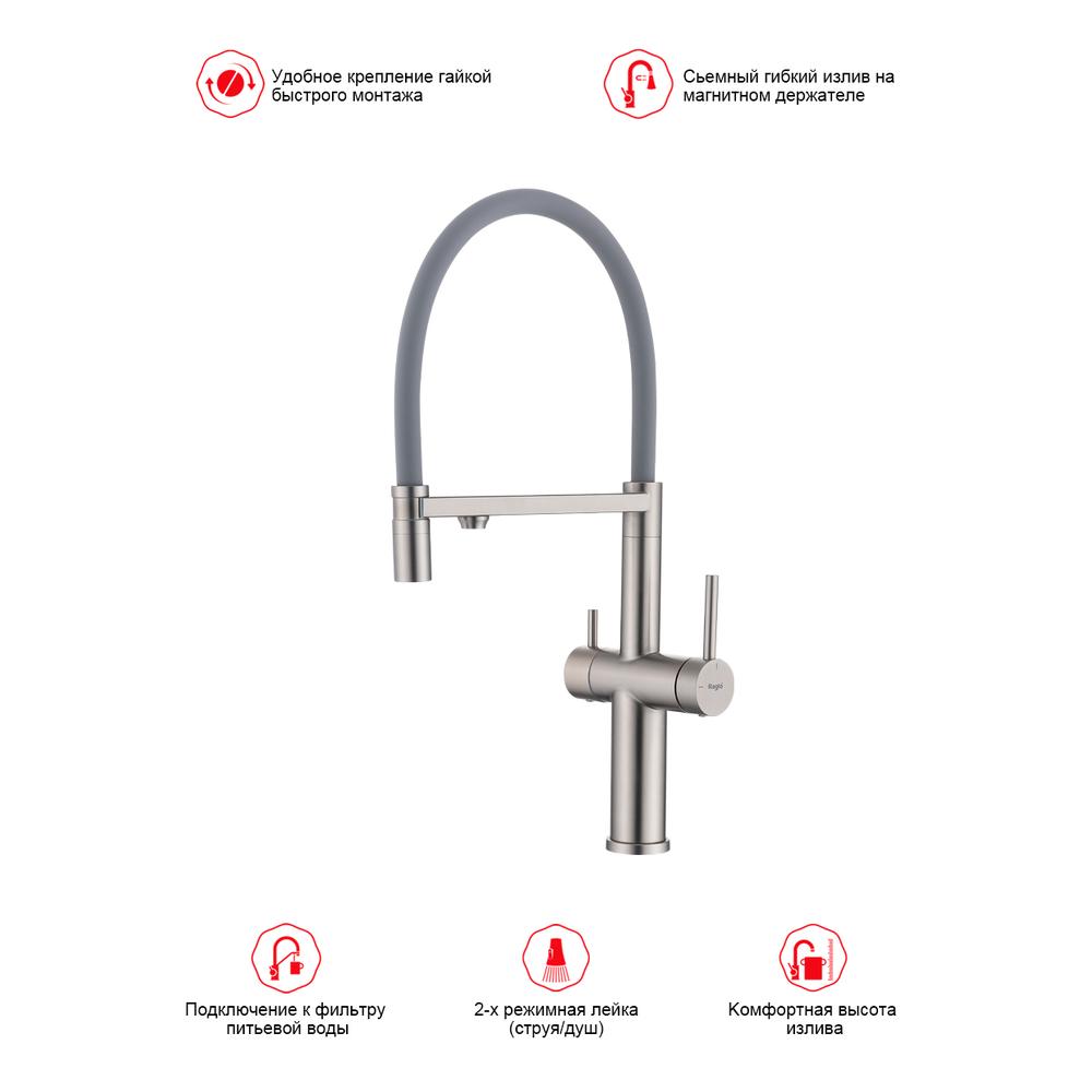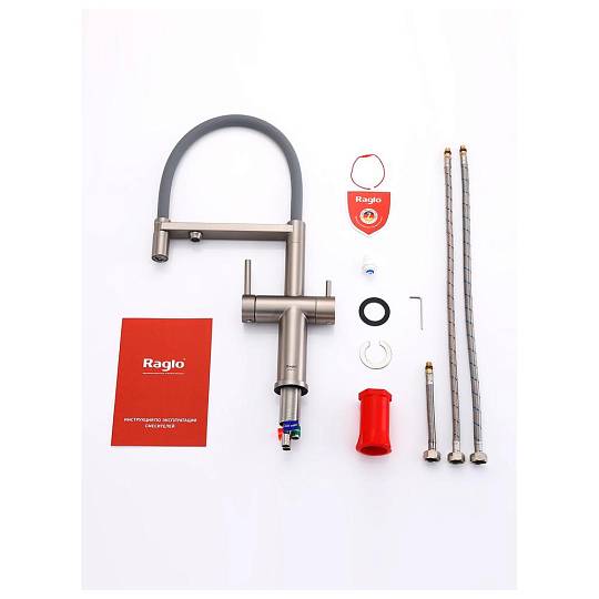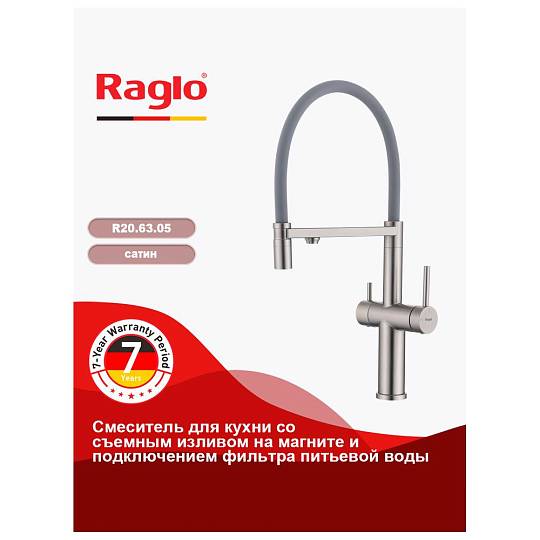 Смеситель Raglo для кухни со съемным гибким изливом, с магнитным фиксатором излива, с подключением фильтра питьевой воды. Крепление на гайке.