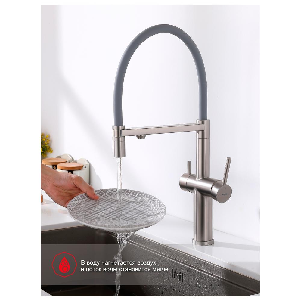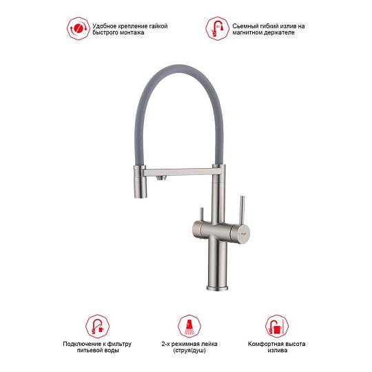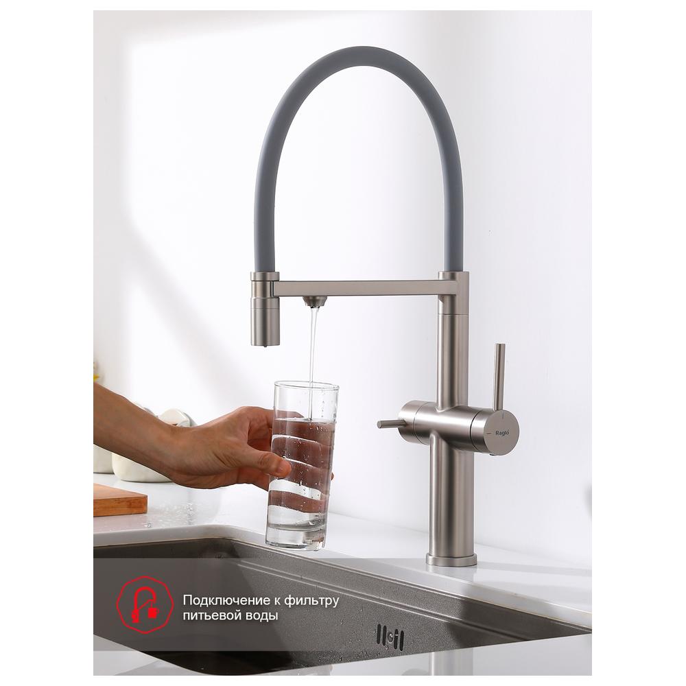 Смеситель для кухни с подключением фильтра Raglo R20.63.05, сатин купить по цене 17 497 руб.