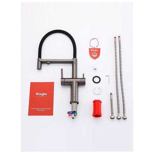 Смеситель Raglo для кухни со съемным гибким изливом, с магнитным фиксатором излива, с подключением фильтра питьевой воды. Крепление на гайке.