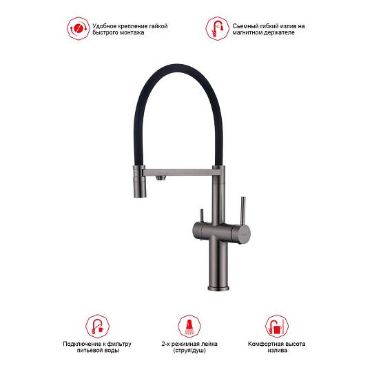 Смеситель для кухни с подключением фильтра Raglo R20.63.09, графит купить по цене 20 678 руб.