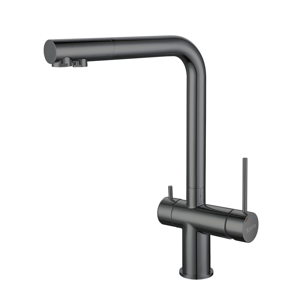 Смеситель для кухни с подключением фильтра Rivelato Lugano 1523513, черный. Материал: нержавеющая сталь. Управление: рычажное. Подключение фильтра для воды: да. Комплектация: смеситель, гибкая подводка. Гарантийный срок на смеситель 5 лет (гарантийный срок на покрытие 1 год).