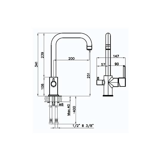 Смеситель для кухни с подключением фильтра Rivelato Tovel 9025203, топаз/хром