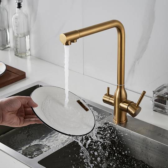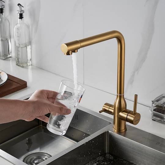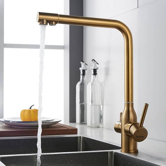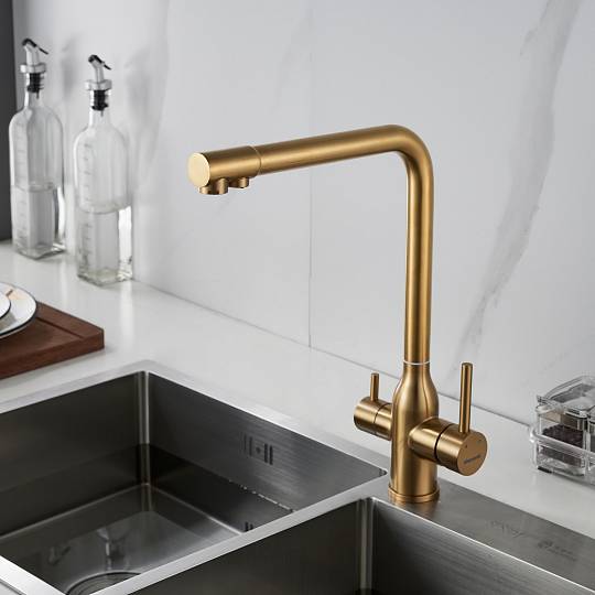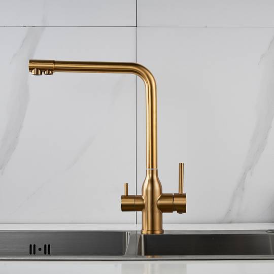 Смеситель для кухни с подключением фильтра Shevanik S248G, золотой сатин купить по цене 8 404 руб.