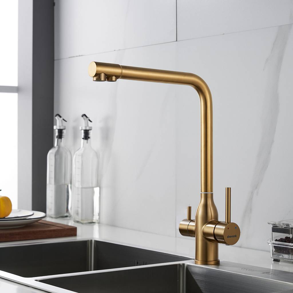 Смеситель для кухни с подключением фильтра Shevanik S248G, золотой сатин
