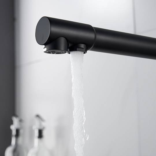 Сердце смесителя — надёжный керамический картридж с рычажным управлением — обеспечивает плавное и точное регулирование напора и температуры воды. Но главная изюминка модели — возможность подключения фильтра для воды. Поворотный излив продуман до мелочей: он предусматривает раздельную подачу водопроводной и фильтрованной воды через два отдельных отверстия, каждое из которых оснащено аэратором. Благодаря этому вы получаете: