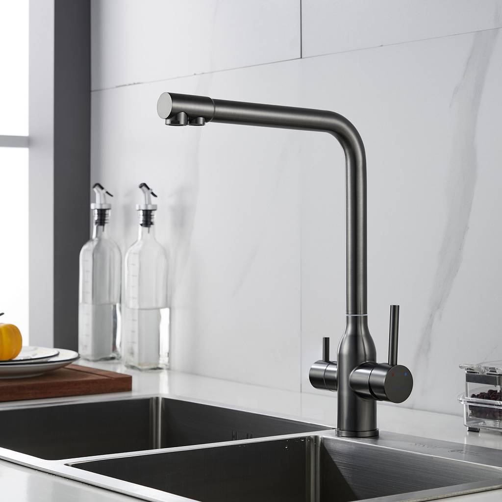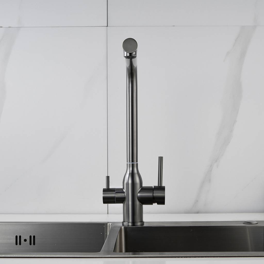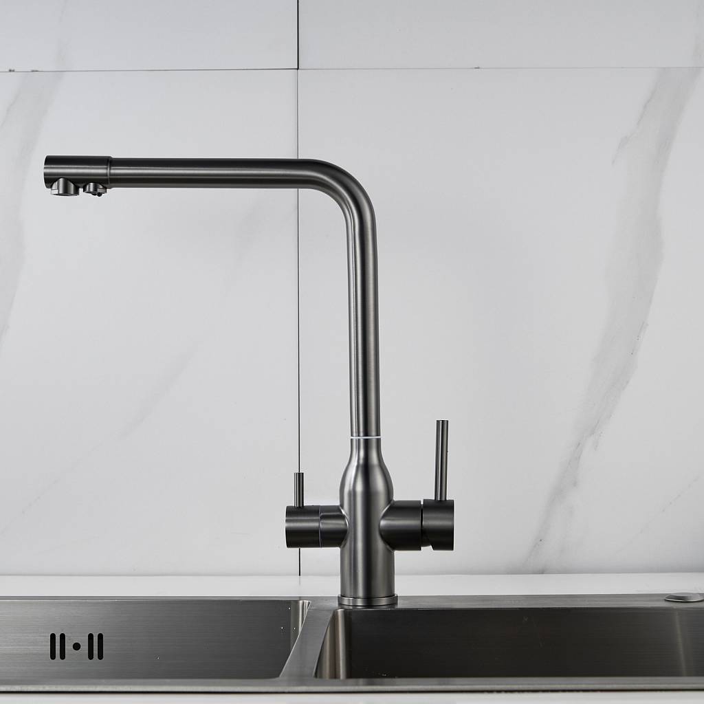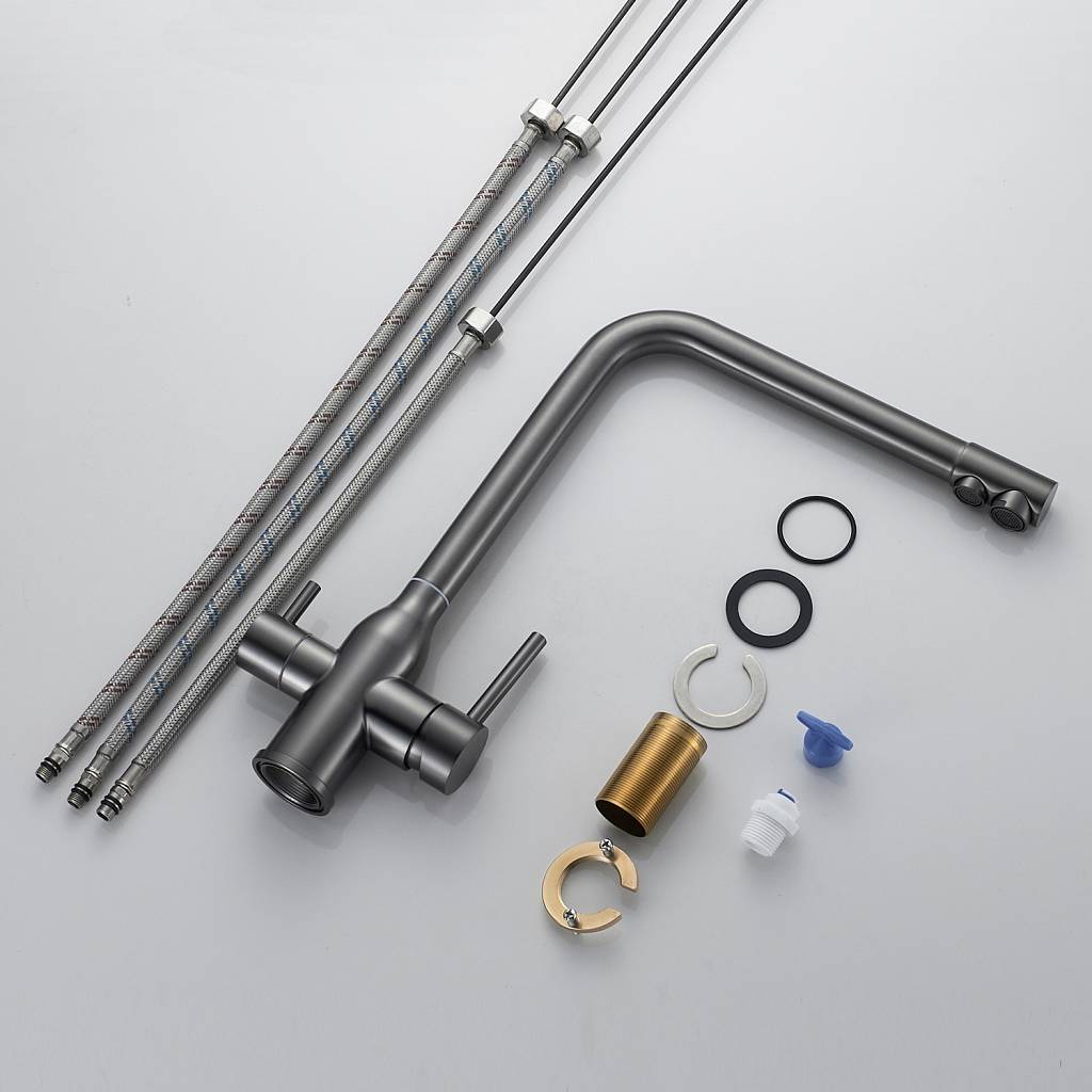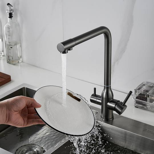 Смеситель для кухни с подключением фильтра Shevanik S248T, оружейная сталь