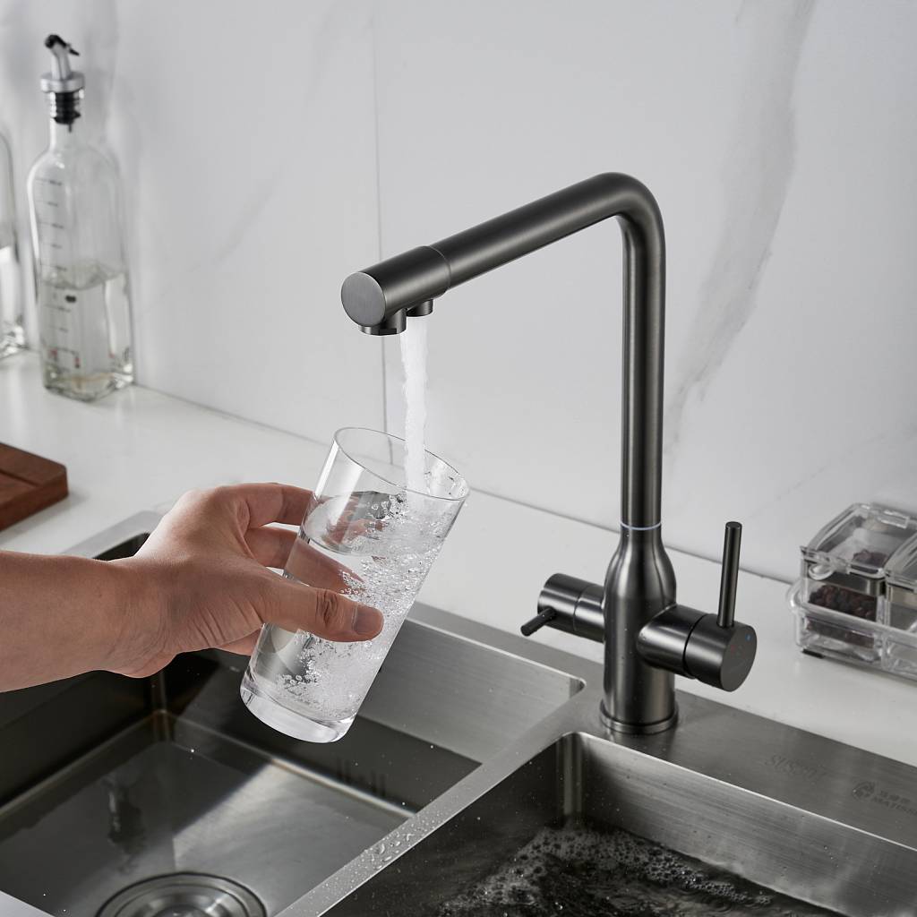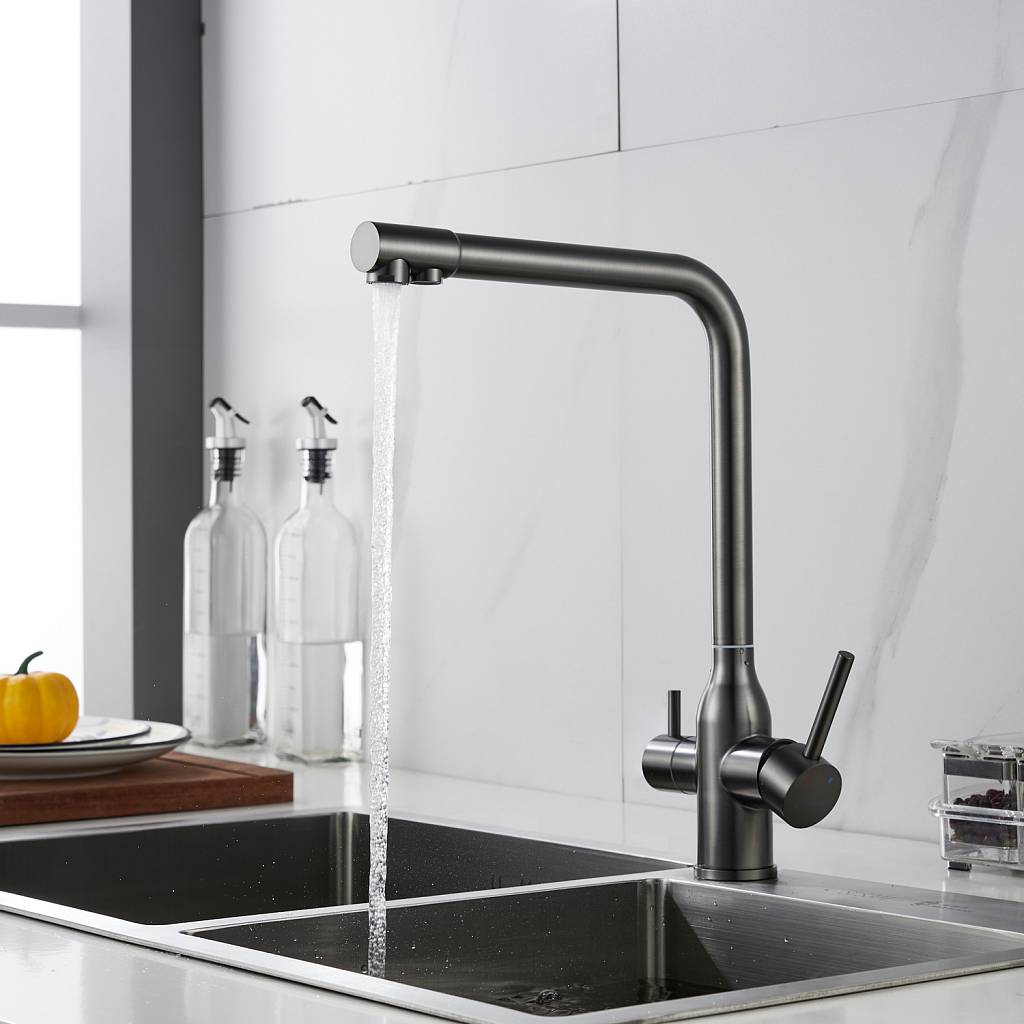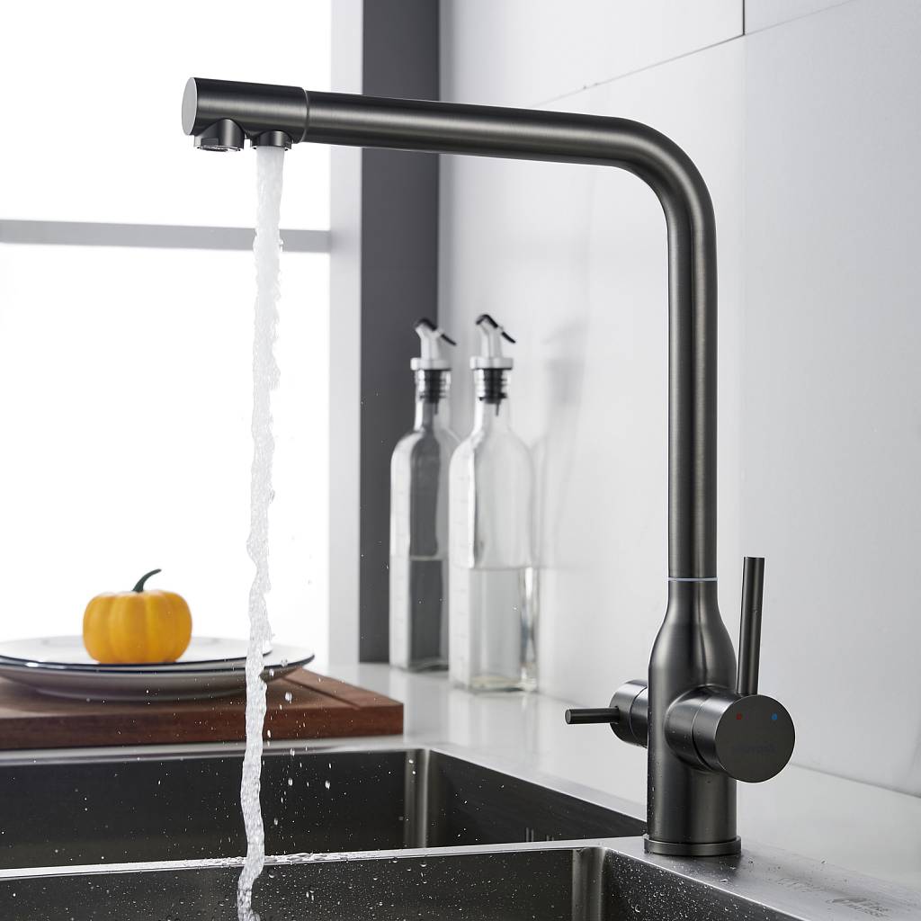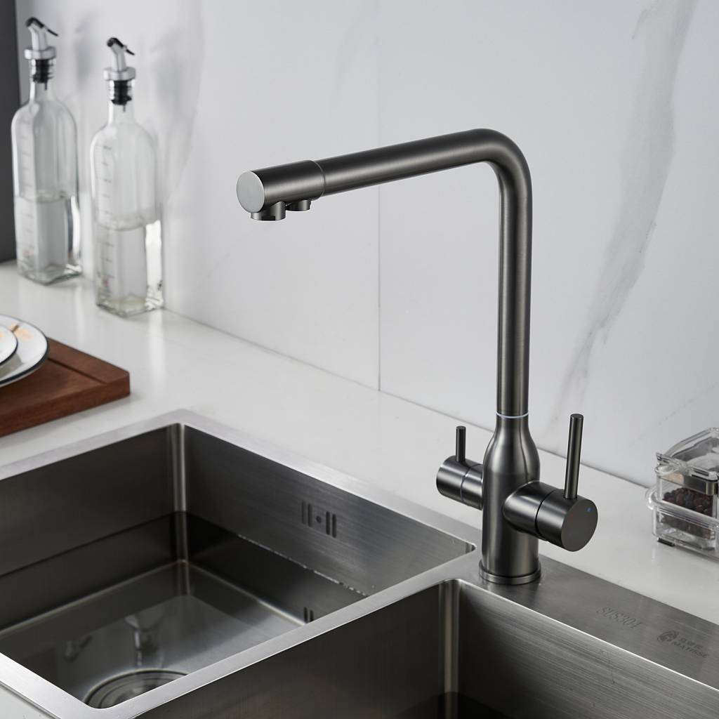 Смеситель для кухни с подключением фильтра Shevanik S248T, оружейная сталь