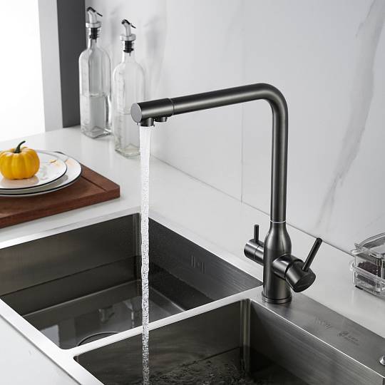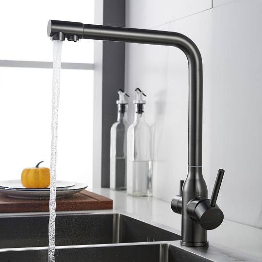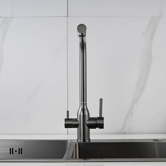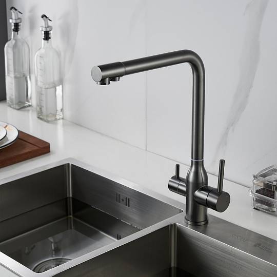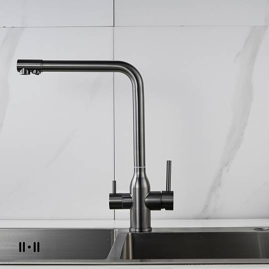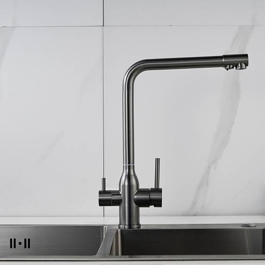 Смеситель для кухни с подключением фильтра Shevanik S248T, оружейная сталь купить по цене 8 179 руб.