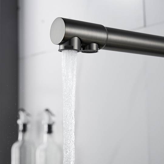 Сердце смесителя — надёжный керамический картридж с рычажным управлением — обеспечивает плавное и точное регулирование напора и температуры воды. Но главная изюминка модели — возможность подключения фильтра для воды. Поворотный излив продуман до мелочей: он предусматривает раздельную подачу водопроводной и фильтрованной воды через два отдельных отверстия, каждое из которых оснащено аэратором. Благодаря этому вы получаете: