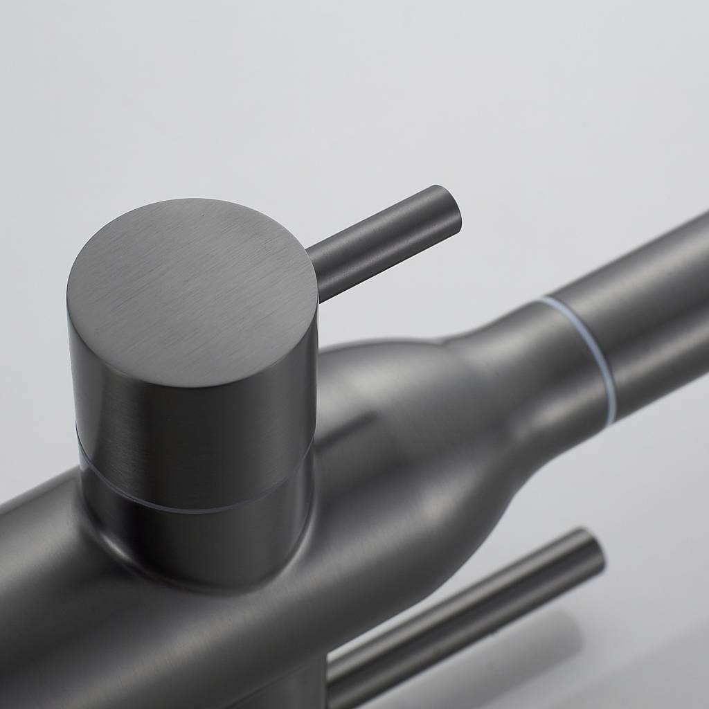 Смеситель для кухни Shevanik S248T в цвете "оружейная сталь" — это продуманное сочетание функциональности, надёжности и современного дизайна, созданное для тех, кто ценит комфорт и качество в повседневных делах. Латунный корпус гарантирует долговечность изделия и устойчивость к интенсивным нагрузкам, а сдержанный эстетичный облик позволит смесителю гармонично вписаться в любой кухонный интерьер.