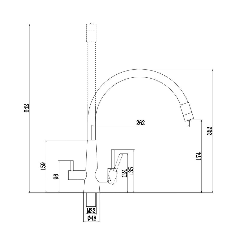 Такая конструкция надёжна, устойчива к деформации и легко очищается. Излив фиксируется в нужном положении, позволяя удобно направлять поток воды.
