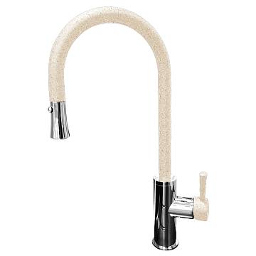 Смеситель для кухни с выдвижным изливом GranFest 7652, бежевый
