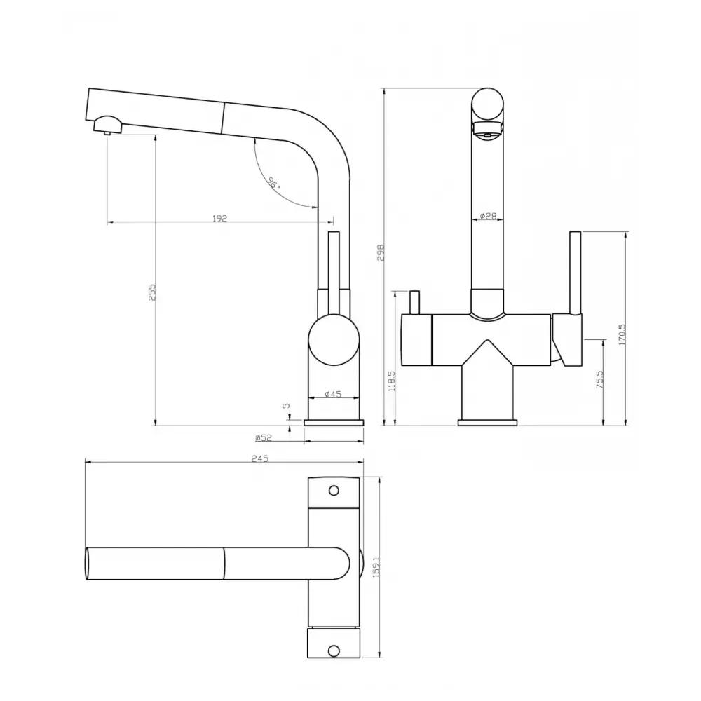 Смеситель для кухни с подключением к фильтру и выдвижным изливом. Керамический картридж Kerox (Венгрия).