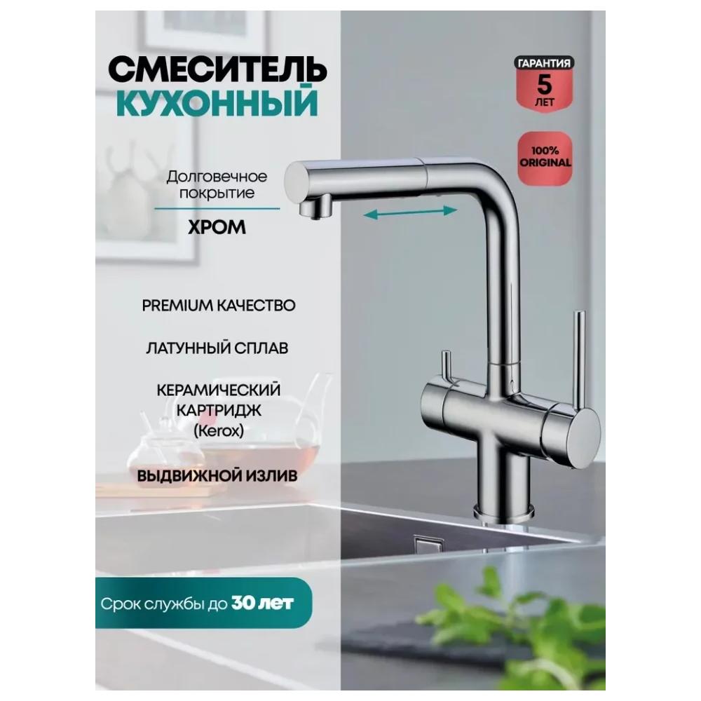 Смеситель для кухни под фильтр с выдвижным изливом Grocenberg GB4097 Хром