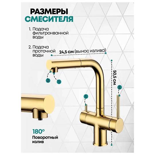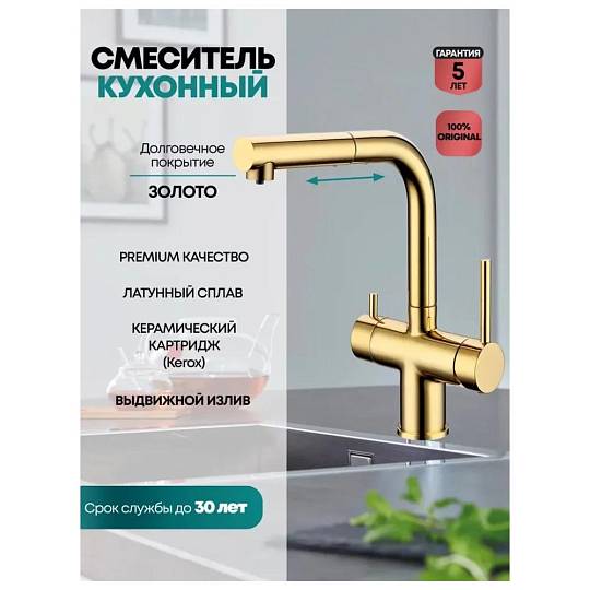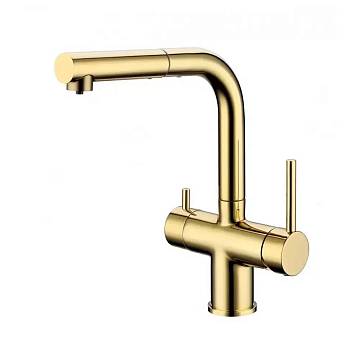 Смеситель для кухни под фильтр с выдвижным изливом Grocenberg GB4097 Золото глянец