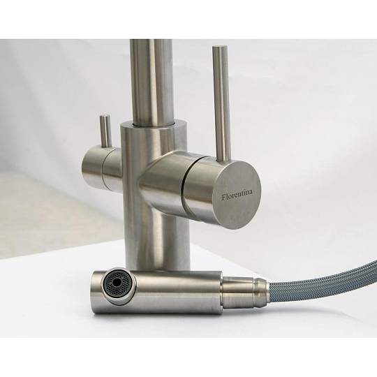 Смеситель для кухни с выдвижным изливом и подключением фильтра Florentina КРИСТАЛЛ 333.33H.2123.900, нержавеющая сталь купить по цене 15 834 руб.