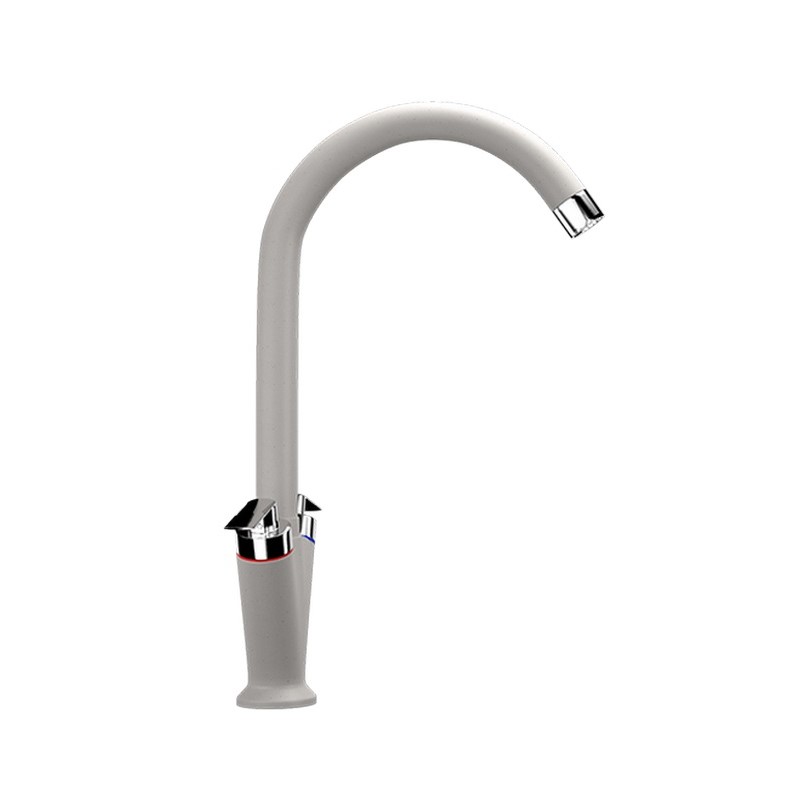 ULGRAN U-011 - классический кухонный двухрычажный смеситель с высоким поворотным изливом. Материал корпуса выполнен из высококачественной латуни, а окрашивание под "искусственный камень" в цвет мойки ULGRAN выполняется на собственном производстве, что позволяет идеально попасть в фирменный цвет ULGRAN. В качестве запорного клапана используется кран-букса с керамическими пластинами,  на подвижные части которых нанесена специальная невымываемая силиконовая смазка.  В свою очередь, сами керамические пластины изготовлены из 96% оксида алюминия, что, в сочетании с высоким качеством шлифовки обеспечивает долговечность, надежность, плавность хода рукоятки.  Смеситель оборудован съемным пластиковым аэратором для экономии воды  и поворотным изливом на 360 градусов. В комплектацию входят:  кран-букса с керамическими пластинами, гибкая подводка 450 мм, комплект крепежных элементов, технический паспорт и гарантийный талон.   Заводская гарантия составляет 3 года на материал корпуса,  1 год на комплектующие к смесителю и 1 год на материал покрытия.