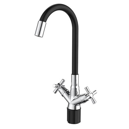 Смеситель для кухни с гибким изливом Voda Dive DV519FB, хром/черный купить по цене 3 450 руб.