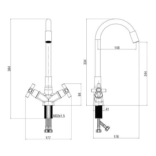 Смеситель для кухни с гибким изливом Voda Dive DV519FB, хром/черный
