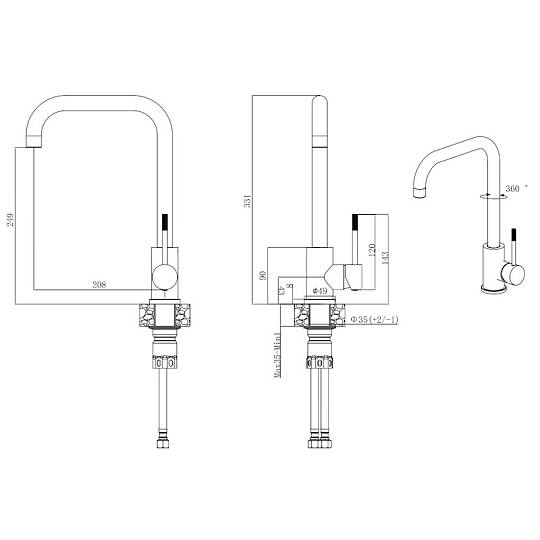 Высокий поворотный излив позволяет легко настроить поток воды под ваши нужды. Этот кран для кухни обеспечивает удобство при наполнении больших кастрюль или ваз водой.