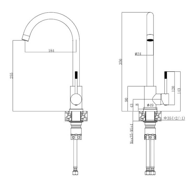 Хотите добавить в свою кухню нотку роскоши? Смеситель K 55B в элегантном черном цвете станет стильным акцентом вашего интерьера. Высокий R-образный излив из нержавеющей стали не только придает смесителям современный вид, но и обеспечивает удобство использования. Надежный керамический картридж гарантирует плавную регулировку подачи воды.