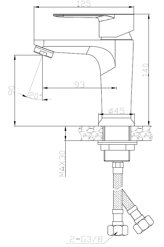 Корпус: латунь кат.A  Картридж: универсальный ESKO, 35мм  Комплектация: пьедестал, крепление "FastFix",гибкая подводка 40см.