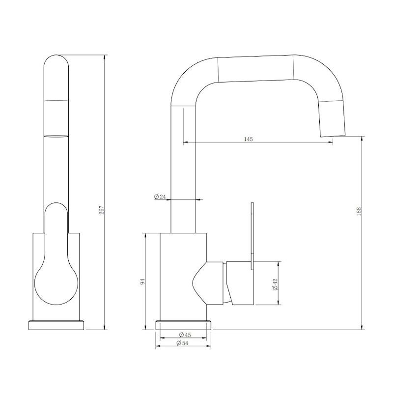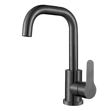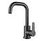 Изготовлен из нержавеющей стали с изящным черным покрытием, этот смеситель оснащен поворотным изливом длиной 14,5 см и картриджем 35 мм для плавной регулировки воды. Металлический пьедестал обеспечивает прочное крепление.