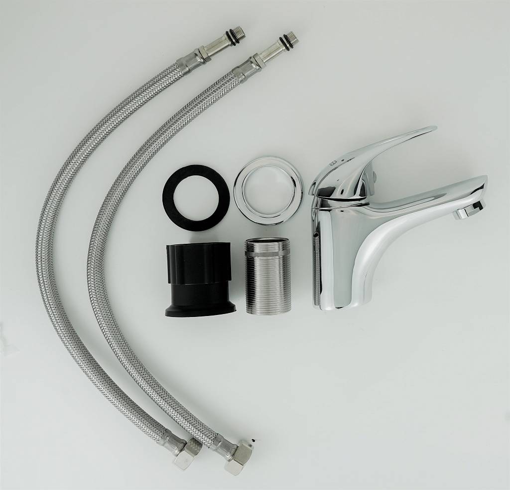 Корпус: латунь кат.A  Картридж: универсальный ESKO, 35мм  Комплектация: пьедестал, крепление "FastFix",гибкая подводка 40см.