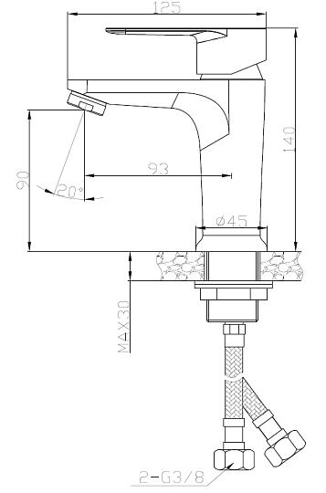 Корпус: латунь кат.A  Картридж: универсальный ESKO, 35мм  Комплектация: пьедестал, крепление "FastFix",гибкая подводка 40см.