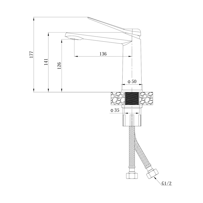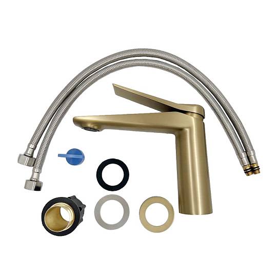 Смеситель для раковины Esko SHA26Gold, золотой сатин. Производство: Россия. Гарантия: 10 лет. Материал: латунь. Управление: рычажное. Излив: традиционный,фиксированный. Подводка: гибкая, 1/2" .