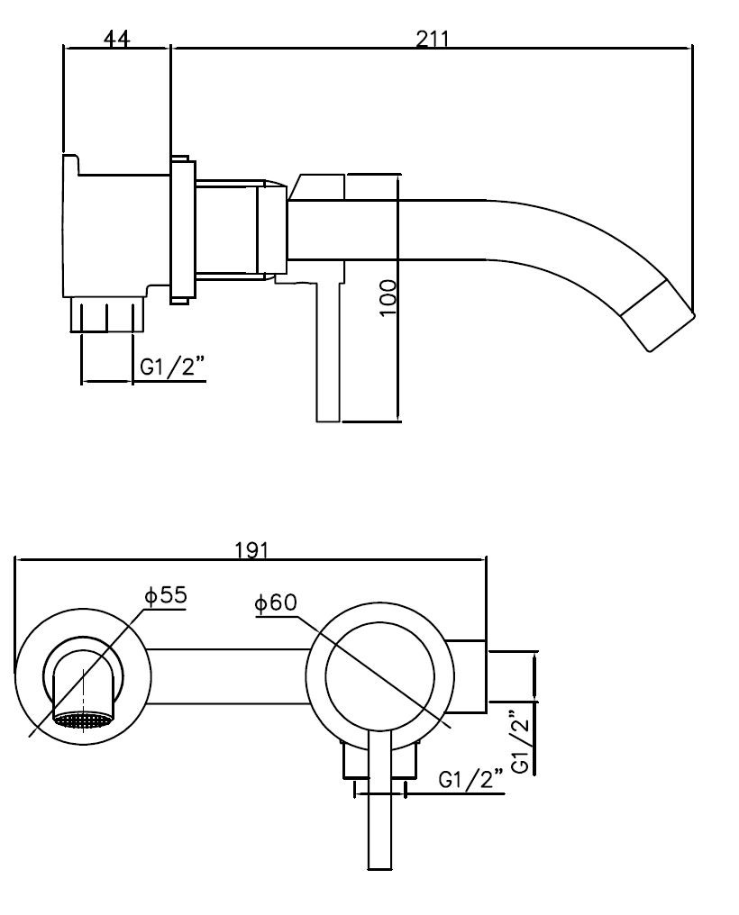 Латунный скрытый единый корпус, отражатель и монтажный комплект