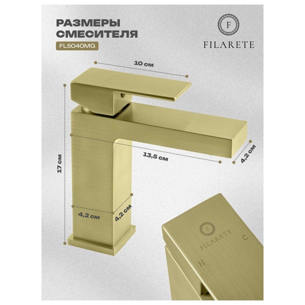 Смеситель для раковины FILARETE Fing FL5040MG, матовое золото. Гарантийный срок: 7 лет. Управление: рычажное. Стилистика дизайна: современный стиль. Материал: латунь. Монтаж: на раковину.