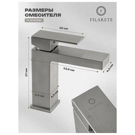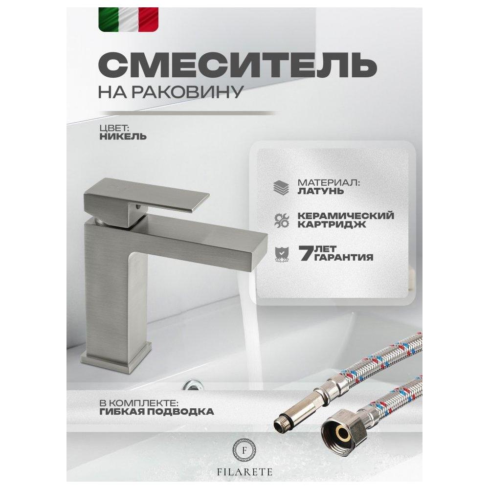 Смеситель для раковины FILARETE Fing FL5040NK, никель. Гарантийный срок: 7 лет. Управление: рычажное. Стилистика дизайна: современный стиль. Материал: латунь. Монтаж: на раковину.