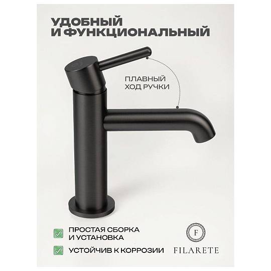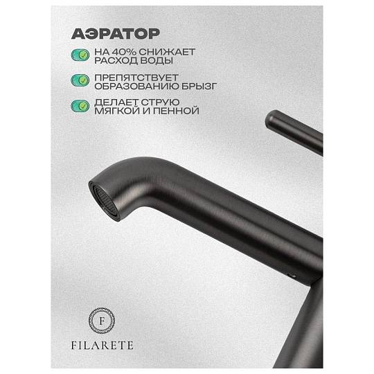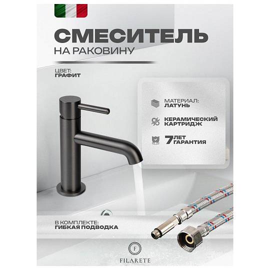 Смеситель для раковины FILARETE Roun FL5020BG, графит. Гарантийный срок: 7 лет. Управление: рычажное. Стилистика дизайна: современный стиль. Материал: латунь. Монтаж: на раковину.