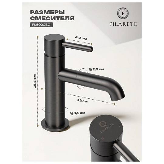 Смеситель для раковины FILARETE Roun FL5020BG, графит