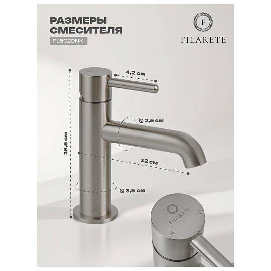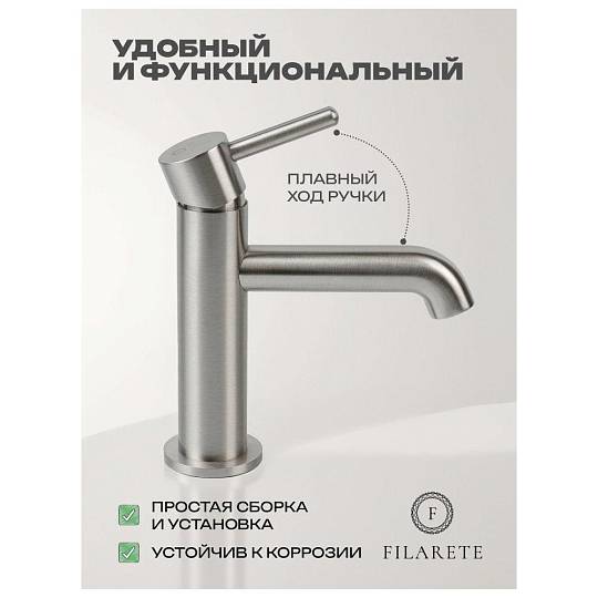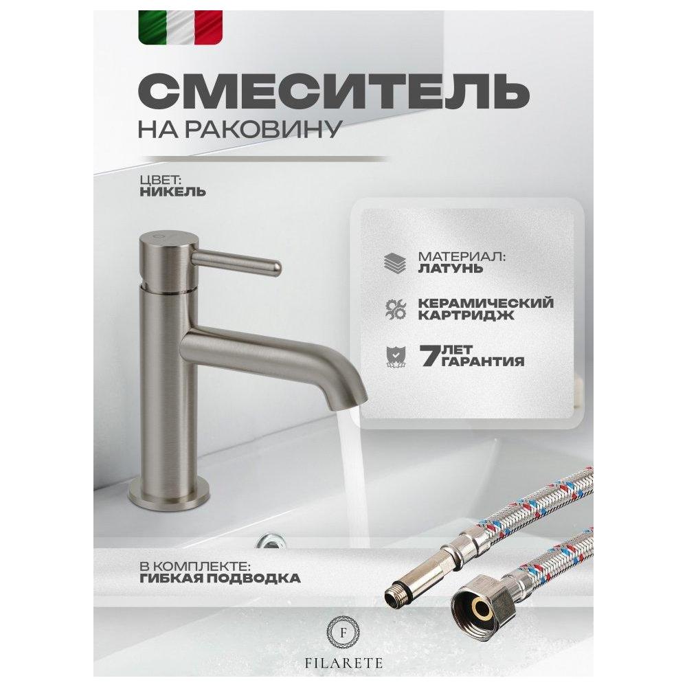Смеситель для раковины FILARETE Roun FL5020NK, никель. Гарантийный срок: 7 лет. Управление: рычажное. Стилистика дизайна: современный стиль. Материал: латунь. Монтаж: на раковину.