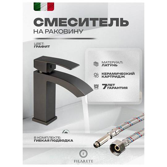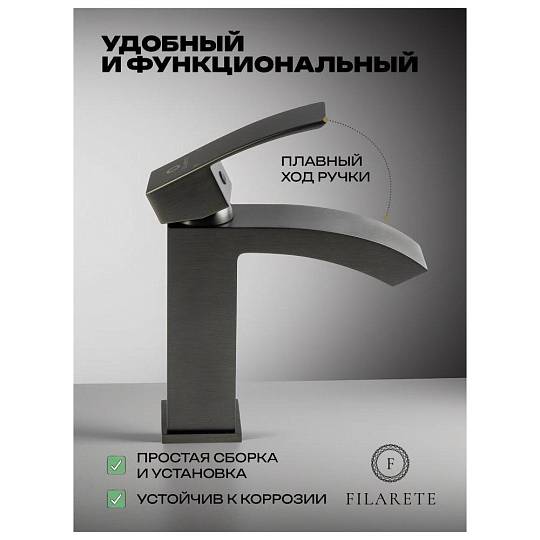 Смеситель для раковины FILARETE Waterfall FL5010BG, графит. Гарантийный срок: 7 лет. Управление: рычажное. Стилистика дизайна: современный стиль. Материал: латунь. Монтаж: на раковину.