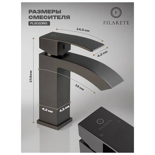 Смеситель для раковины FILARETE Waterfall FL5010BG, графит